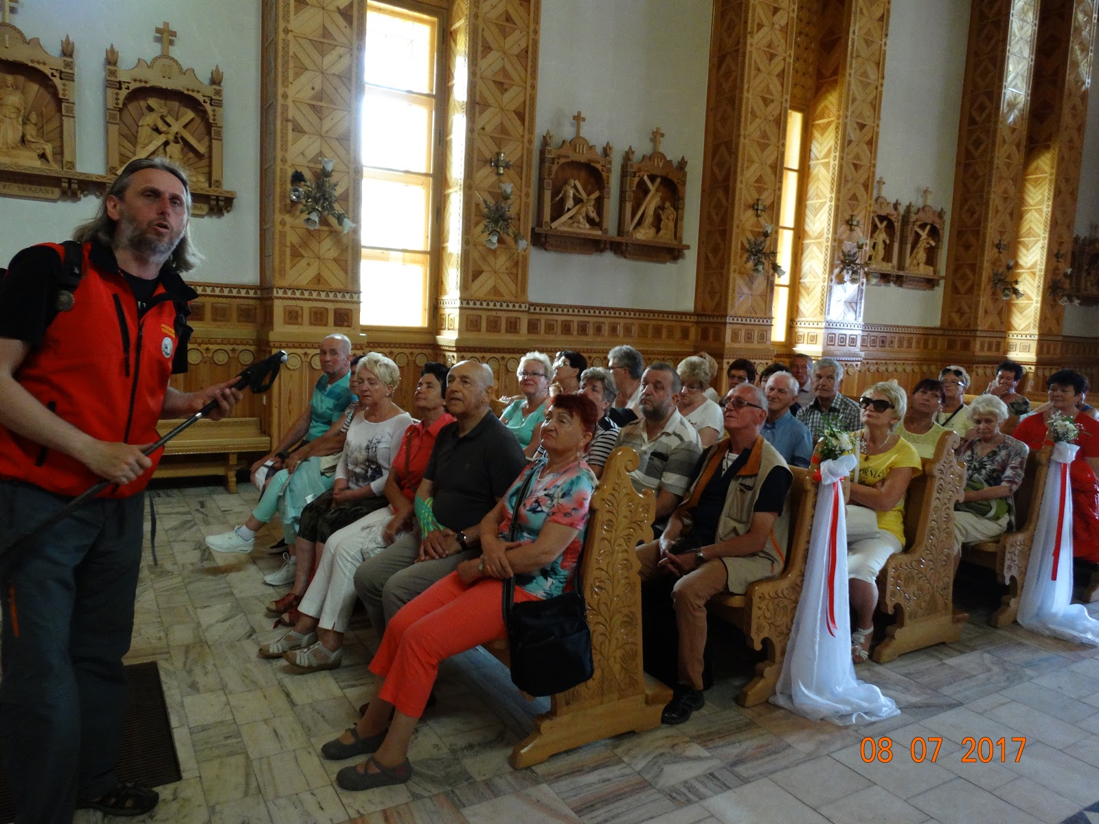 W sobotę, 8 lipca mieliśmy wycieczkę objazdową. Zwiedziliśmy Kaplicę na Bachledówce i kościół O.O. Paulinów, Ludźmierz – Sanktuarium (Bazylika Mniejsza), czyli „Gaździnę Podhala”. Przeżyliśmy niezwykłą przygodę, gdyż na trasie przejazdu spotkaliśmy orszak weselny góralskiej młodej pary, która zgodnie z ogólnopolską tradycją obdarowała nas płynnym poczęstunkiem i to w podwójnej porcji. Nasze wzruszenie sięgnęło zenitu, kiedy okazało się, że pan młody pochodzi z naszego województwa pomorskiego, a dokładnie z samego Gdańska. Zwiedziliśmy również Chochołów – „żywy skansen” ze starą góralską zabudową (z Chochołowa zrobiliśmy wypad na pobliską Słowację do sklepów na zakupy). Na zakończenie zachwycaliśmy się obrazami na szkle w Galerii, którą prowadzi matka naszego przewodnika i osobiście tworzy te arcydzieła sztuki.